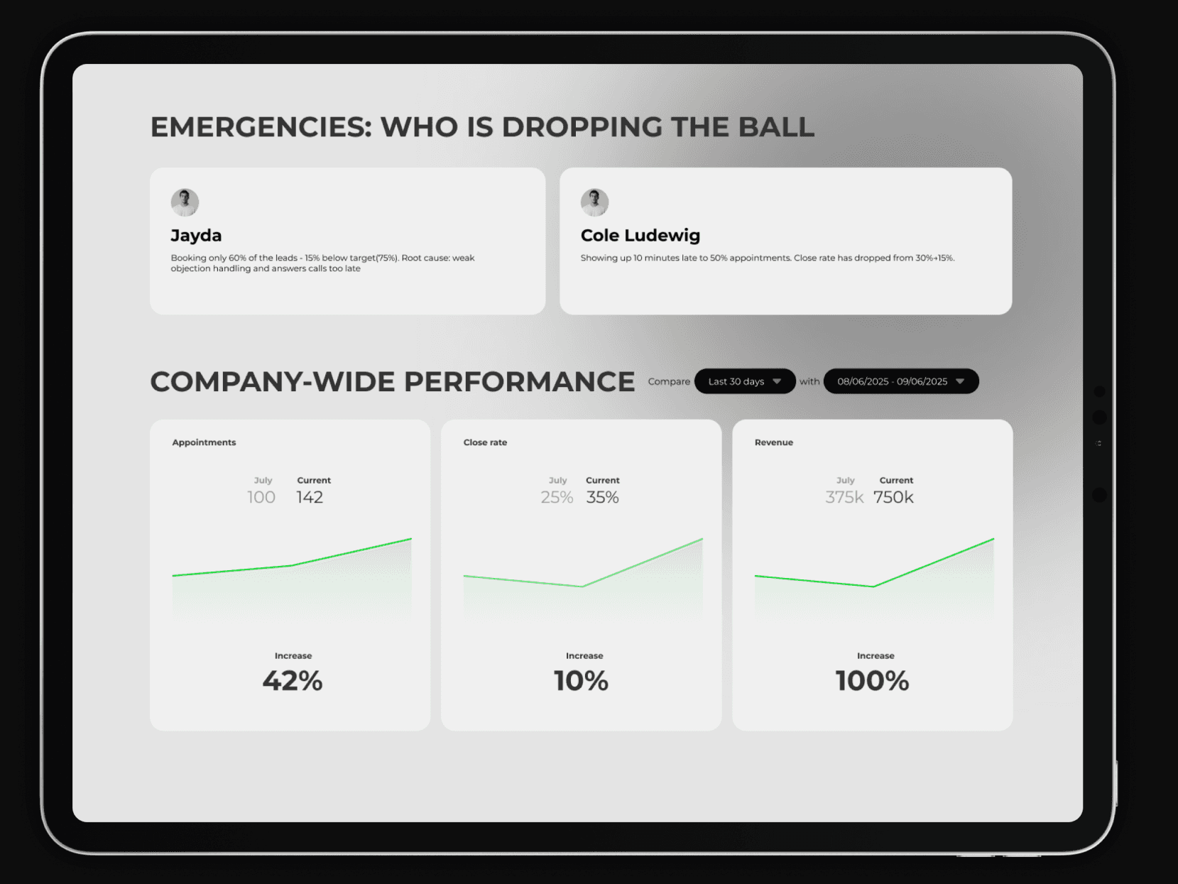 How leadership improved close rates by enforcing sales process execution using real appointment data — not ride-alongs or guesswork.